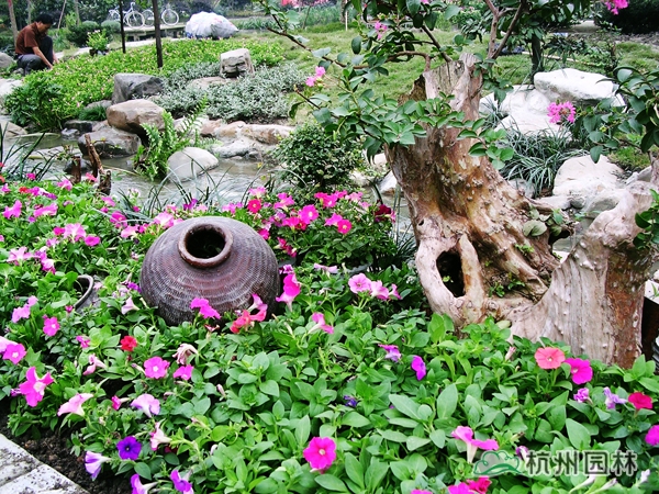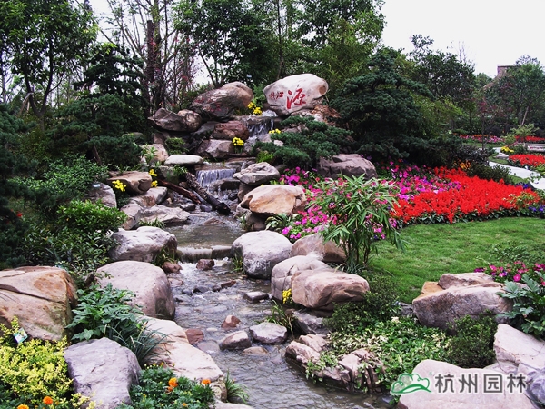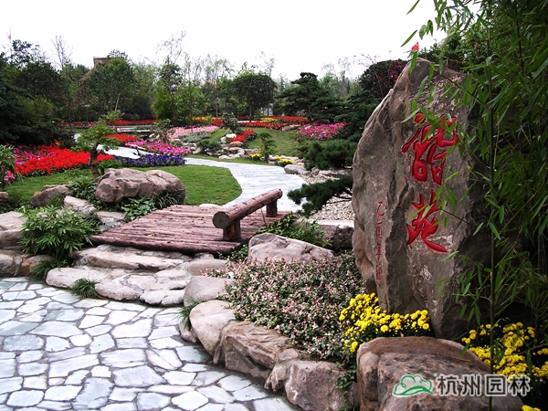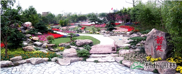 第六屆中國花博會之浙江園,又名花漫錢塘。占地面積1420平方米,呈自然式布局,全園以浙江山水為背景,以母親河錢塘江奔流入海為主線,一灣流水貫穿全園,“錢江源”、“晴空海蜃”兩大景觀交相輝映。園內綠樹盎然,花漫遍地,洋溢著浙江的朝氣與活力,體現(xiàn)了浙江自然山水、人文歷史、經濟社會的和諧。