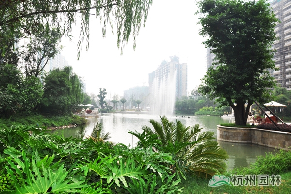 該工程以豪闊手筆打造,近10000平方米的皇家疊水園林與逾8000平方米壯闊雙湖傾城碧波勝景,游走其間,各式園林小品穿插點綴其中,園中大量運用噴泉、雕塑、花壇、樹叢等精心布置景觀小品,展現(xiàn)令人贊嘆的皇家美景,湖岸旁精心布置的疊水景觀、親水平臺、噴水雕塑、親水棧道之間,以花卉、景觀樹完美銜接,景觀錯落有致,塑造出豐富的層次,打造出步移景異的極致景觀效果。
