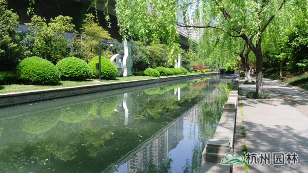 該工程位于杭城南部,施工范圍為倉河下路至鳳山橋,內(nèi)容包括綠化種植、土方、園路平臺(tái)、廊架棧道、雕塑基礎(chǔ)、河道清淤等。工程在充分尊重歷史文脈的基礎(chǔ)上,再現(xiàn)了生態(tài)優(yōu)美的自然環(huán)境,綠意盎然的植物、舒緩平坦的園路、飽經(jīng)滄桑的古橋、栩栩如生的雕塑,與沿街的粉墻黛瓦、名人故居等遙相呼應(yīng),千年中河美景,盡顯無遺。