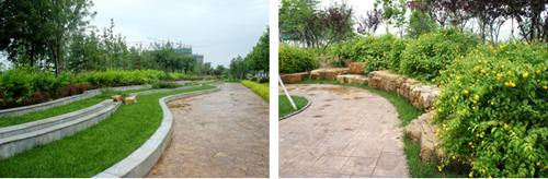 據(jù)高經(jīng)理介紹,該工程是壽光市2009年的一項重點市政工程,本著綠色、生態(tài)、自然的原則,在保留部分大樹的基礎上,對道路景觀進行了全新改造。工程由北至南,依次設置下沉廣場、北廣場、南廣場、方形廣場等多個景觀節(jié)點,每個節(jié)點的植物配置、地面鋪裝等都各不相同,形成一個個獨具特色的小場景;同時,又通過錯落有致的植物搭配、蜿蜒曲折的游憩步道,將整個工程貫穿起來,使得整體的景觀效果統(tǒng)一中富于變化,開闊中層次分明。