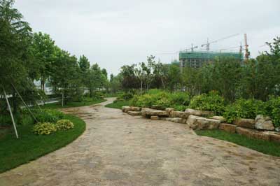 山東壽光市東環(huán)路東側(cè)綠化改造工程(圣城街-北環(huán)路)面積9萬平方米,施工范圍為機動車道與非機動車道之間2.5米的隔離綠化帶和30多米寬的路側(cè)綠化帶,施工內(nèi)容包括土方地形整理、綠化種植、園路鋪裝、景石擺放、景觀小品營建等。2009年9月開工,2010年7月竣工。經(jīng)過2年的精心養(yǎng)護,如今,這里樹木蔥郁,花草繁茂,一路走來,隨著多種風格的園路在腳下延伸,風景也在眼前不斷變化。近日,通過對項目負責人高仁良的采訪,我們對該工程有了更多了解。