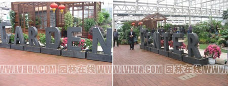 一進(jìn)入室內(nèi),首先映入眼簾的就是“GARDEN CENTER”(花園中心)幾個大字,仔細(xì)一看,上面還有流水青煙,十分吸引人的眼球?;▓@中心內(nèi)不僅展示了各式各樣的室內(nèi)植物、庭院植物,更有各種肥料、工具等園林資材展示。