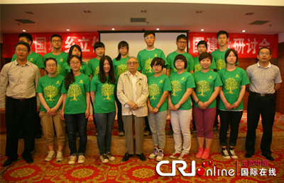 兩院院士、原建設(shè)部副部長周干峙與美麗獎(jiǎng)校園大使集體合影。