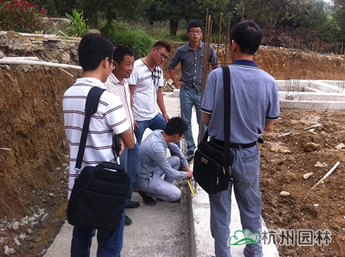 目前,安吉項(xiàng)目部按照施工進(jìn)度計(jì)劃已完成了售票房、公廁、山門、入口亭子、攝香居庭院等的基礎(chǔ)結(jié)構(gòu)施工。檢查組一行到項(xiàng)目部后,先對(duì)施工現(xiàn)場進(jìn)行了全面細(xì)致的檢查,指出了存在的問題,同時(shí)將正確的操作程序?qū)κ┕と藛T進(jìn)行詳細(xì)講解,要求施工人員嚴(yán)格按規(guī)范操作,保證工程質(zhì)量。接著,工程管理部、成本部和財(cái)務(wù)部對(duì)項(xiàng)目部進(jìn)行交底工作,并提出相應(yīng)的要求。