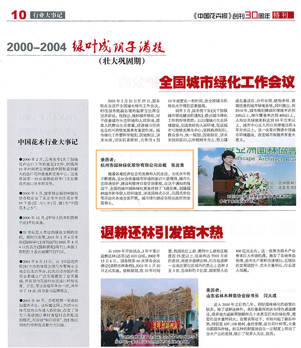 【中國(guó)花卉報(bào)】創(chuàng)刊三十周年特刊之2000-2004 全國(guó)城市綠化工作會(huì)作