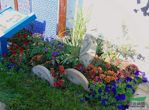 ②為展現浙江特色的山水景色,使“浙江園”在花博會開園期間呈現出層次豐富、色彩艷麗的綠化景觀,在植物造景方面大量運用了自然花境、花帶、生態(tài)墻等多種手法,顏色以紅、黃等亮色調為主,花境植物品種經篩選后達70多種,如黃金構骨、金姬小蠟、紫菀、矮麥冬、八仙花等。為保證景觀效果,這些花境及植物材料被提前運到銀川,通過修剪、培育等多種技術手段促進花芽分化,對花期進行調控,使這些花境植物展現出長勢繁茂、花團錦簇的良好狀態(tài)。