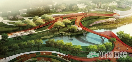 樂活園藝主題區(qū):以家庭園藝花園為主,是公園的圩田濕地體驗中心,水道如巷,河汊如網(wǎng)的圩田農(nóng)藝景觀,呈現(xiàn)出田園牧歌般的意境。包含飄帶走廊、水蕩花田等景點。