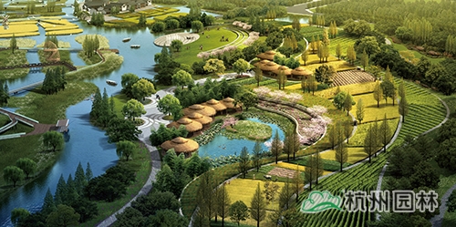 養(yǎng)生休閑主題區(qū):對原有的生產(chǎn)景觀保留改造,水稻田、葡萄園、油菜園、果園、苗圃以及可食用水生植物被布置其中,兼具經(jīng)濟與觀賞價值,結(jié)合水莊、竹庭、有機菜園,酒莊等休閑景點,推廣宣傳現(xiàn)代都市農(nóng)業(yè)。
