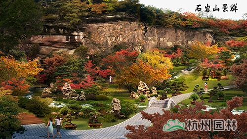 結(jié)合石巖山上有先照寺、一覽亭遺址,補(bǔ)充秋色葉樹種,突出石巖望秋的意境,結(jié)合鵝鼻峰八仙采藥的傳說(shuō)布置牡丹草藥園,展現(xiàn)湘湖養(yǎng)生文化。