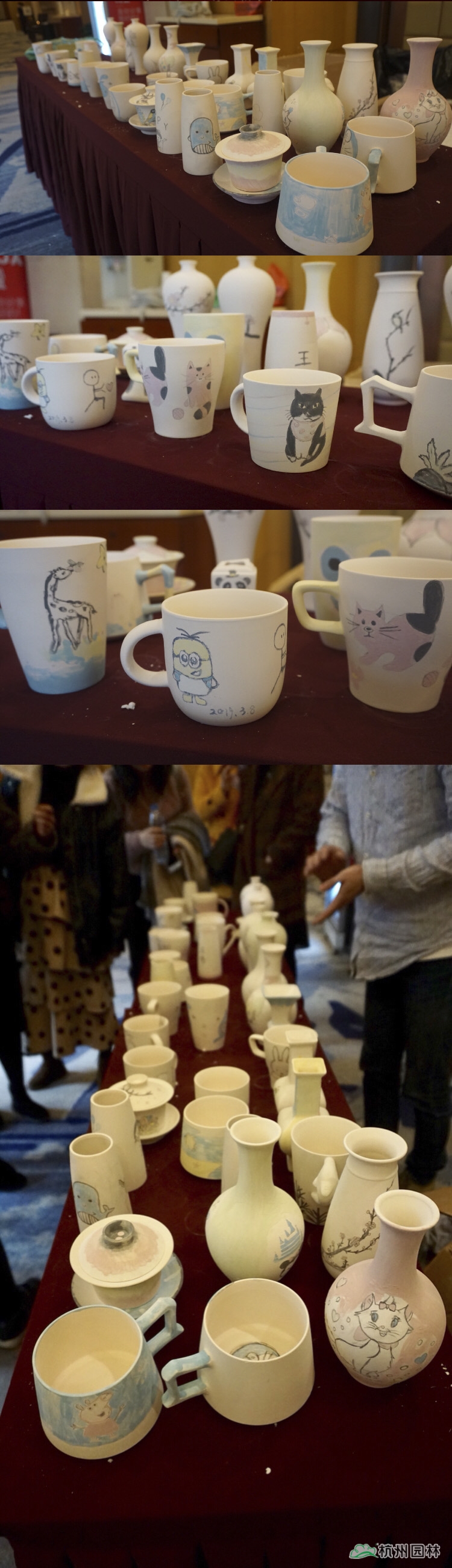 說起陶藝,大家想到的肯定是雙手扶著轉盤上的陶泥,捏出形態(tài)各異作品的場景,但今天我們玩點不一樣的。素胚固然清爽,但少了色彩的點綴,總會覺得好像黑白電影略顯枯燥。是的,這次我們將畫紙搬到了這些瓶瓶罐罐之上。認真的女人真的很美,一幅幅生動的畫作在短短的一個多小時的時間里展現(xiàn)在了大家的眼前。有山水,有動物,有卡通畫,有說要送給家中寶寶的,也有說這代表了我們一家三口的。拿起畫筆的小仙女們,不再是那些個日常辦公室里的形象了,她們在今天,把自己的可愛、風趣、溫婉、隨性等等面貌展現(xiàn)得淋漓盡致。