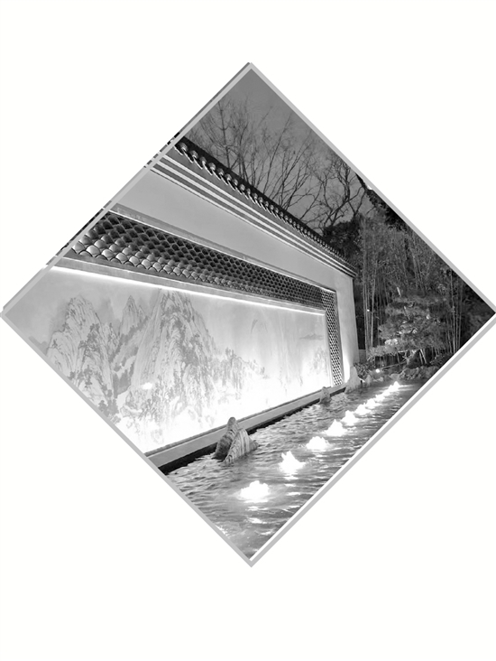 園區(qū)主入口,游人一進園,就能看到大瀑布和亭子,再加上富春山居圖造壁,呈現(xiàn)出浙江山水風(fēng)景特點。浙江省地形復(fù)雜,其中三分之二的面積是山地丘陵,所以,浙江園也是依此而建的。為了能讓往來的游客在進園時就直觀的感受到這種景觀效果,盧山和團隊為游客們設(shè)計了兩條游覽線,一條從入口進來之后向山上走,體驗登高望遠(yuǎn),感受山林景觀的游覽過程;還有一條是從庭院路線走的,就是讓游客有行走在家宅的感覺。在設(shè)計時,盧山選取了明清時期的建筑形態(tài),粉墻黛瓦。建筑上層是黑的,墻是白的,展現(xiàn)出浙江傳統(tǒng)建筑的文化元素。盧山還說:“眾所周知,浙江的茶葉非常有名,我們在展園里打造成了一個茶山景觀,再配上一些花卉??傮w上,是要展示出一個富美浙江主題的庭院。”