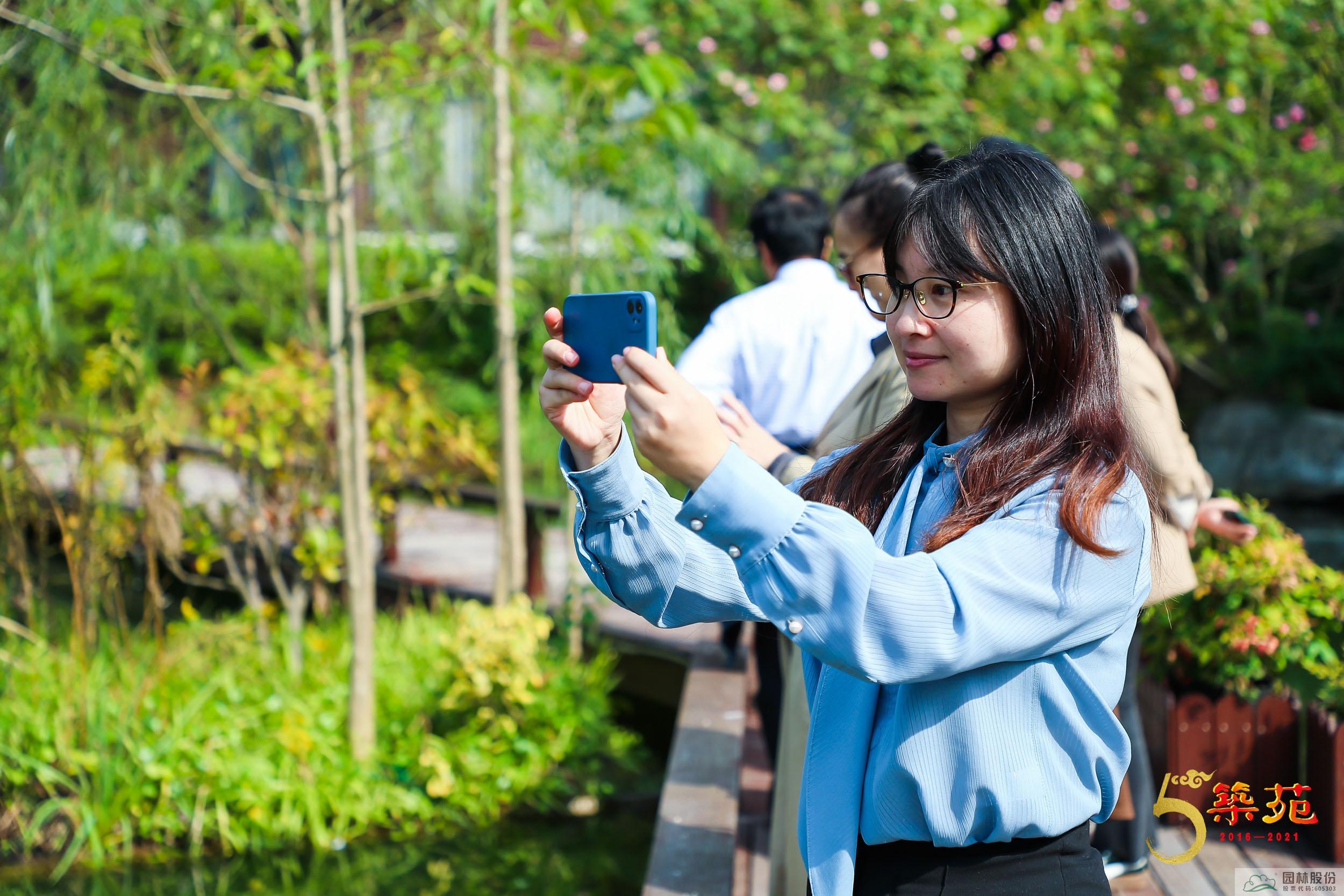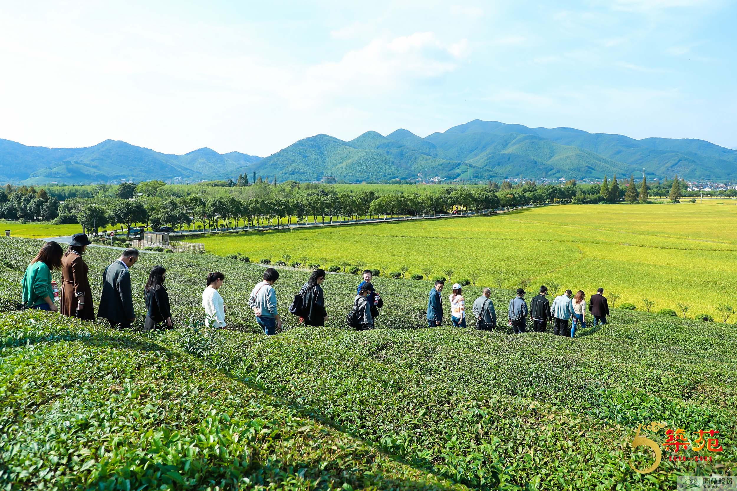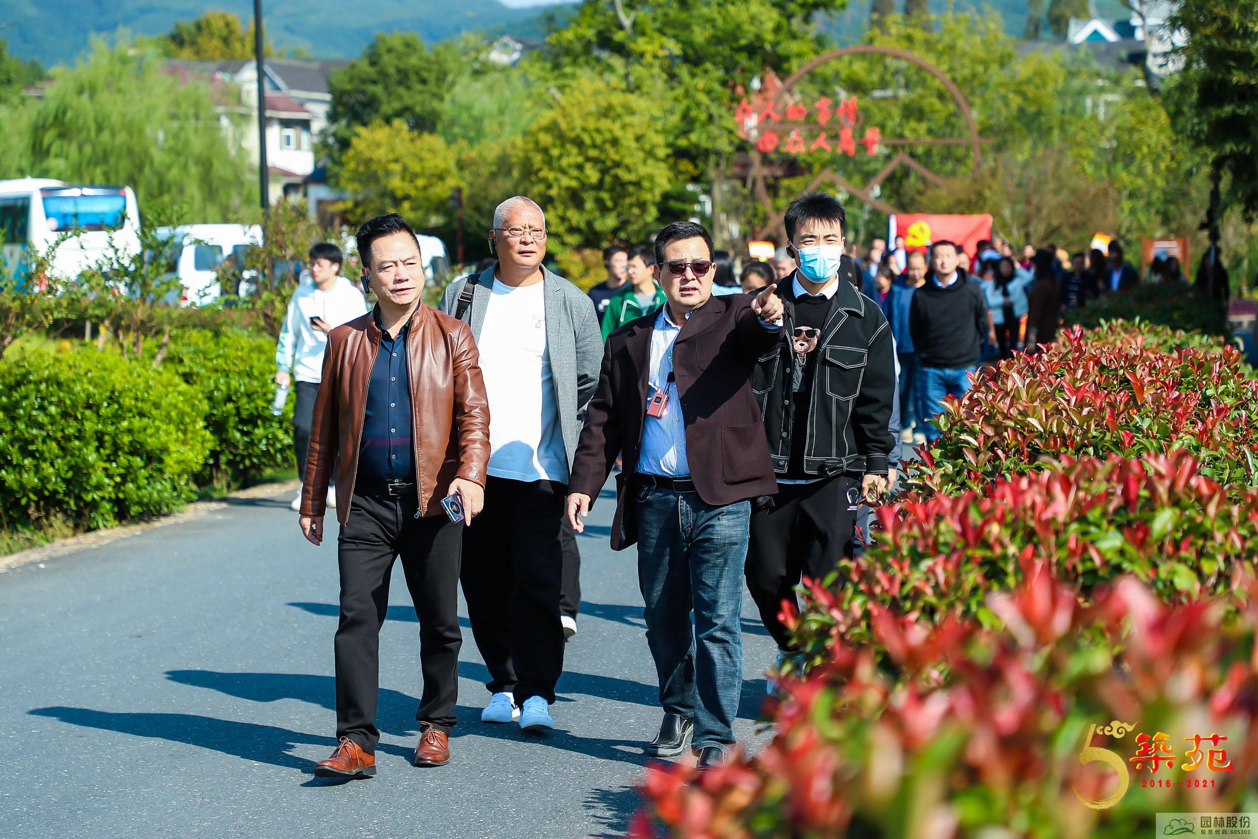 25日,與會嘉賓一起前往園林股份承建的余杭徑山小古城村和公司下屬的畫境·青山湖花園中心參觀考察。