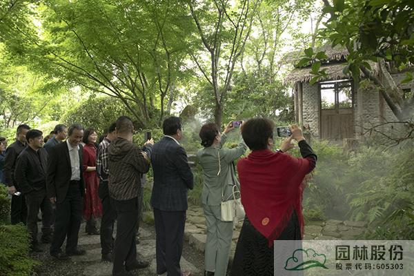 在李壽仁的帶領(lǐng)下,與會(huì)人員首先參觀了畫境·青山湖花園中心室外景觀展示區(qū)。五月的花園中心,綠意盎然,繁花綻放,鋪展開一幅生態(tài)自然、清新怡人的風(fēng)景畫卷,引來(lái)大家的不斷贊嘆,紛紛直呼“太美了!”“太漂亮了!”