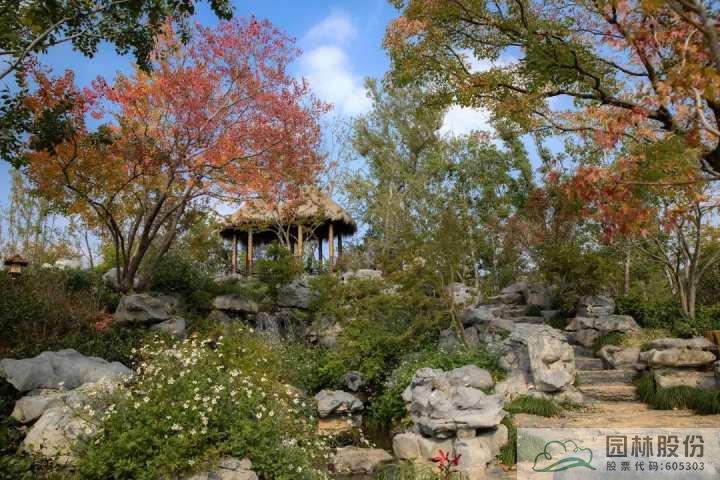 沿著山石小道拾級(jí)而上,便到了“問(wèn)茶”展區(qū),這里有一處茅草雙亭,是整個(gè)杭州園的制高點(diǎn),可一覽全園風(fēng)光,也可以遠(yuǎn)眺園外風(fēng)景?!熬G色、智能、節(jié)儉、文明”是杭州第19屆亞運(yùn)會(huì)的辦會(huì)理念,此次也同樣運(yùn)用到了杭州園中,在建園初期,建設(shè)人員開(kāi)挖出了不少大大小小的山石,并巧妙地就地取材,最小化干預(yù),修建成了山石小路,這些石塊鋪成的園路與太湖石營(yíng)造的假山溪澗融合在一起,渾然天成。