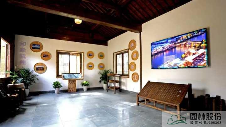 在屋內(nèi),是一個(gè)室內(nèi)展廳,它以現(xiàn)代化數(shù)字媒體手法和圖文展板來(lái)為觀眾講述來(lái)自浙江的故事。展廳內(nèi)容共有三個(gè)部分,為“印象杭州”“詩(shī)畫(huà)浙江”“美麗家園”,通過(guò)豐富的表現(xiàn)方式,展現(xiàn)了浙江發(fā)展成就,描繪了一幅鄉(xiāng)村振興的美好圖景。
