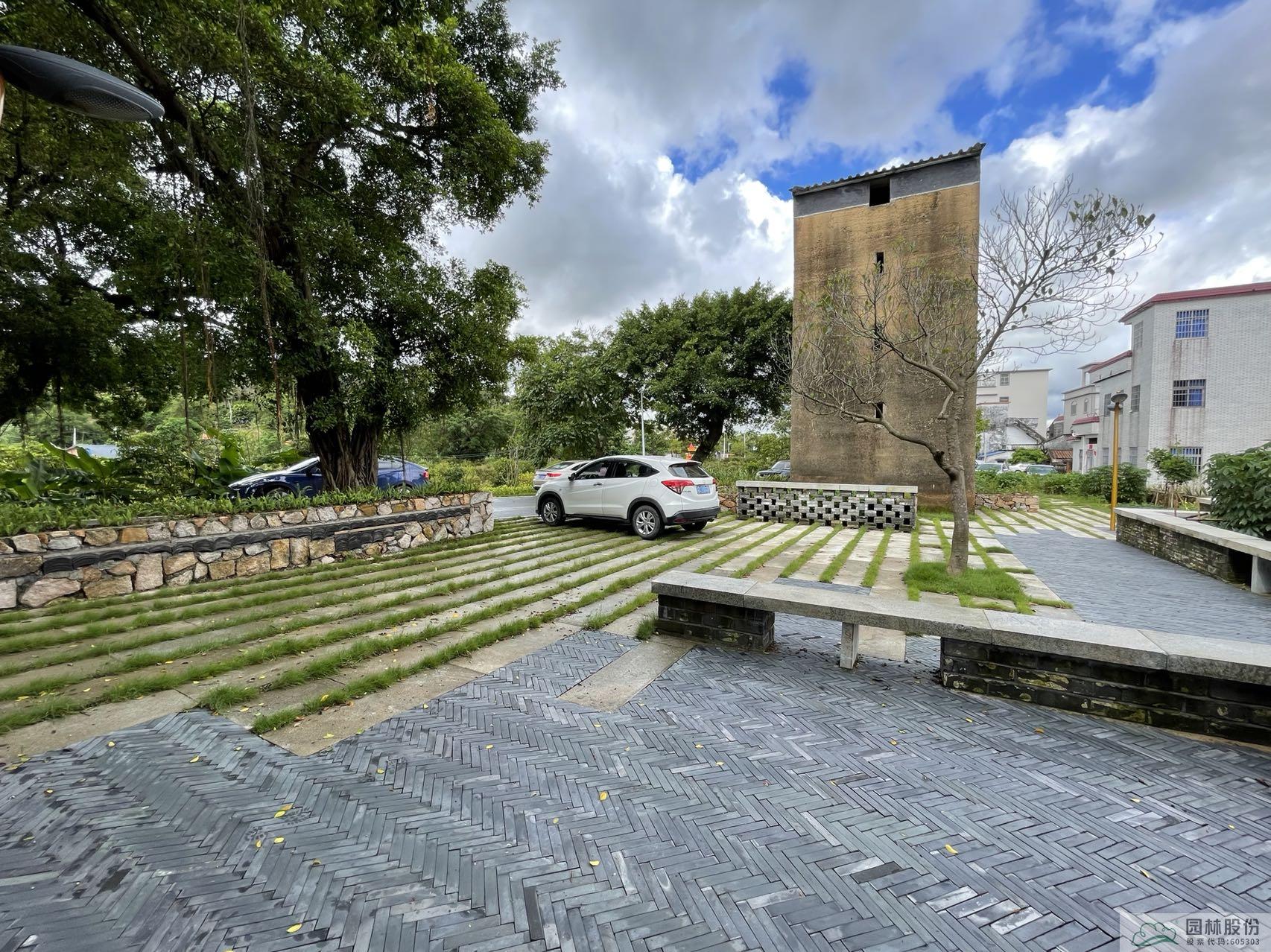 入口進(jìn)入,是石咀防范匪患而建的黃泥百年碉樓,為凸出碉樓這一特殊的建筑,我們?cè)诘飿窃O(shè)計(jì)開(kāi)闊的,擁有與碉樓相關(guān)記憶符號(hào)的村口節(jié)點(diǎn)小公園。