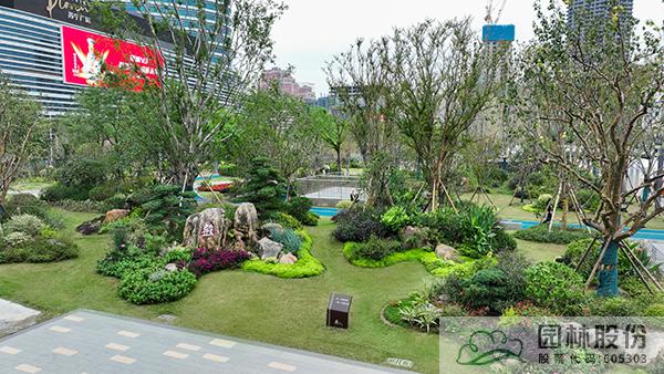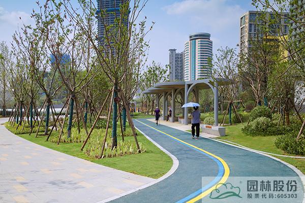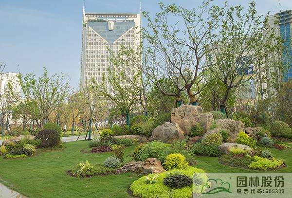 項(xiàng)目注重新優(yōu)植物的應(yīng)用,行道樹采用娜塔莉、中心廣場(chǎng)通道兩側(cè)綠地種植美國(guó)紅楓、中心廣場(chǎng)內(nèi)種植銀杏樹等色葉樹種。翠綠的枝葉相互掩映,樹下設(shè)有林蔭座凳,夏季可有“大樹成蔭”之景,市民可觀賞可乘涼,充分感受自然野趣。主道路行道樹為染井吉野等開(kāi)花與色葉樹種,周邊綠地采用混合花境置石結(jié)合的配置手法,時(shí)花、低矮花灌木與景石自然搭配,并大量應(yīng)用了公司自主研發(fā)的繡球新品種,營(yíng)造景觀豐富的長(zhǎng)效花境景觀。