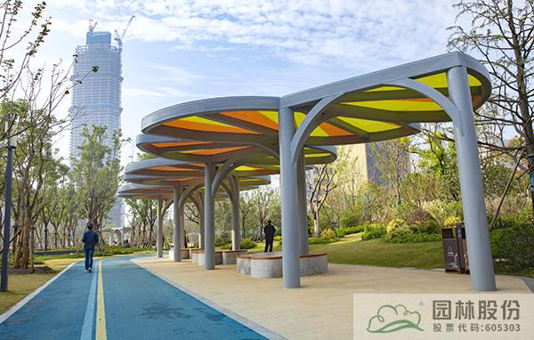 在跑道沿途,有4處可供歇息的銀杏廊庭(時(shí)光驛站),廊庭頂部設(shè)計(jì)為黃褐色的銀杏葉交錯(cuò)重疊,充滿自然生趣,讓銀杏“市樹”文化擁有了更具體的功用。