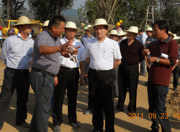 9月23日上午,徐州市委書記曹新平和副市長王昊、市政園林局局長李云峴等一行,來到云龍湖珠山景區(qū)景觀綠化工程施工現(xiàn)場視察,杭州市園林綠化工程有限公司常務副總李壽仁、營銷副總陳伯翔、徐州分公司總經(jīng)理王世新、項目技術負責人來永川、徐中明等前往陪同。