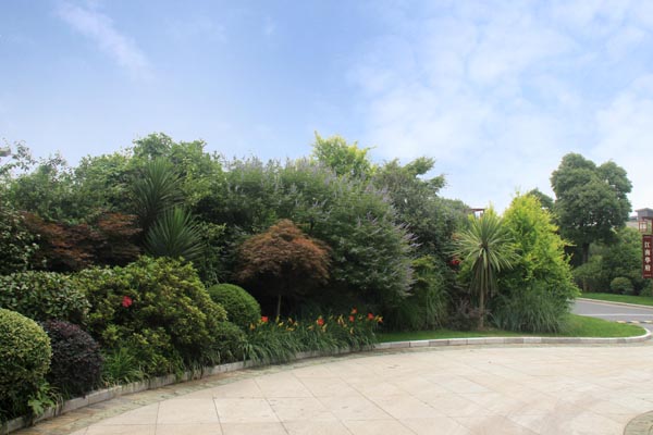 別墅小區(qū)公共景觀的植物配置不但要與建筑、環(huán)境相協(xié)調(diào),還要做到多層次、多樣化、多季相,并創(chuàng)造出植被生態(tài)景觀及其圍合空間的豐富多彩,達(dá)到人與環(huán)境的和諧統(tǒng)一,因此,植物的選擇與配置顯得尤為重要。據(jù)徐建良介紹,工程中的植物選擇與配置遵循三個(gè)原則:第一,根據(jù)地域特征,考慮季相變化;第二,根據(jù)建筑空間的大小、遠(yuǎn)近,近景或端景配置觀賞性強(qiáng)的品種,遠(yuǎn)景的植物配置則充分考慮空間天際線(xiàn)及建筑物之間的關(guān)系;第三,充分考慮林下植物和孤賞植物布置的各個(gè)方面,突出自然生長(zhǎng)特征和人工修整造型植物之間的反差對(duì)比。以此為指導(dǎo),上層空間選擇了香樟、合歡、玉蘭、樸樹(shù)、銀杏等大規(guī)格喬木,中下層空間種植紅葉石楠、枸骨、杜鵑、鋪地柏、火棘等花灌木和地被,再配以微地形的處理,整個(gè)植物造景的林冠線(xiàn)、林緣線(xiàn)及空間層次別具特色,從而使得別墅區(qū)的整體景觀層次分明、色彩豐富,既在統(tǒng)一中富于變化,每個(gè)區(qū)域又自成風(fēng)格。特別是每個(gè)路口的花境營(yíng)造,更為小區(qū)增添一抹亮色。