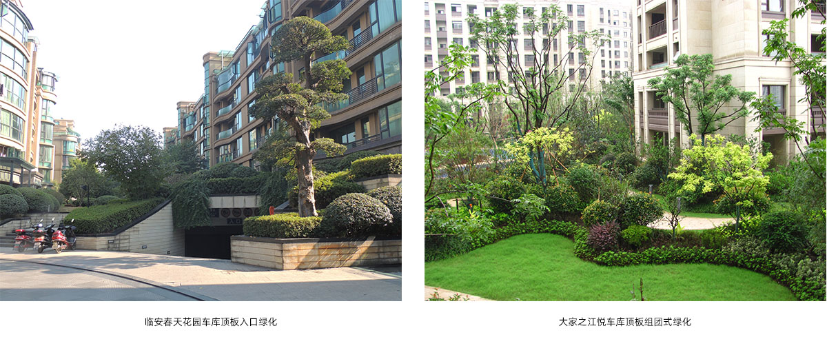利用梁柱、承重墻等結構的設置,增加頂板覆土厚度,提高植物群落復雜程度,豐富景觀多樣性。并通過排水系統(tǒng)、輕型基質、花箱等種植方式的利用,建立形式多樣、種類豐富的頂板結構景觀模式。